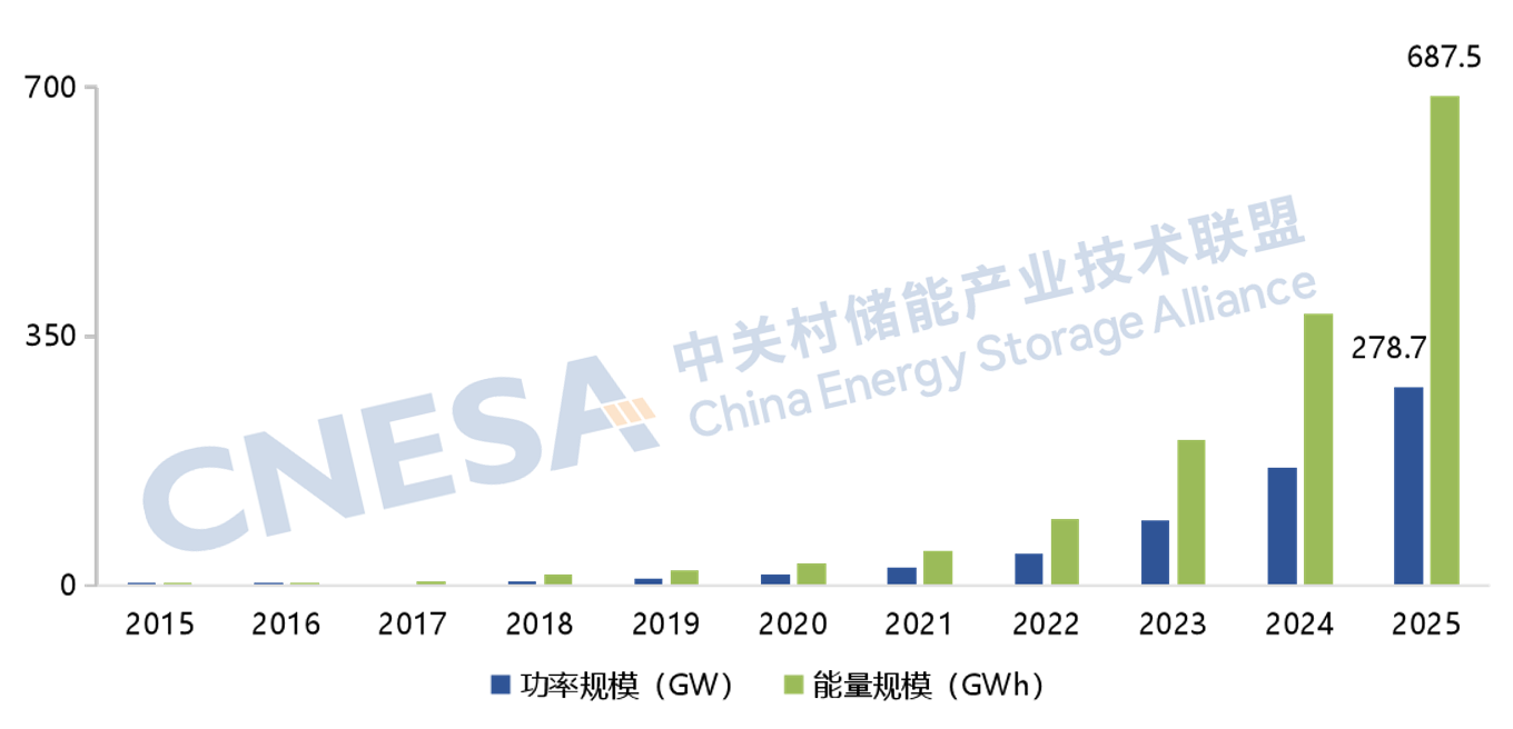 2025年,全球儲能市場繼續(xù)保持高速發(fā)展態(tài)勢,全年新增投運電力儲能項目裝機規(guī)模首次突破100GW,達到123.9GW,同比增長49.3%;其中,新型儲能新增裝機占比超過90%,達到113.3GW/305.8GWh,同比增長52.9%/72.0%。