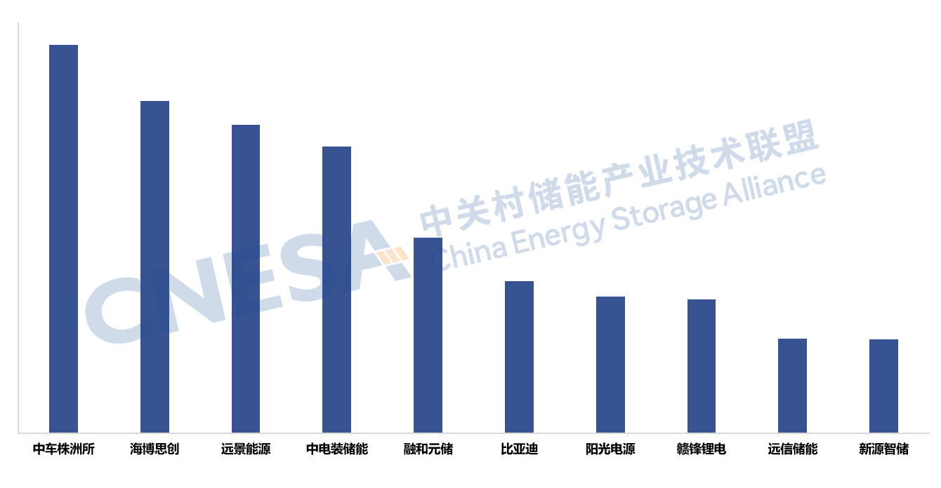 2025年度,國內(nèi)市場中,儲能系統(tǒng)出貨量Top10的中國企業(yè),依次為:中車株洲所、海博思創(chuàng)、遠景能源、中電裝儲能、融和元儲、比亞迪、陽光電源、贛鋒鋰電、遠信儲能和新源智儲。
