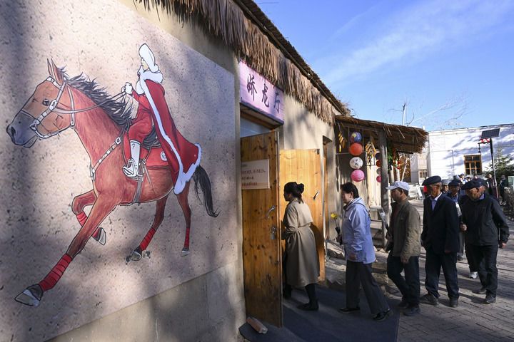 2026年4月3日,人們排隊(duì)進(jìn)入新疆昭蘇縣燈塔知青館嬌龍廳獻(xiàn)花,追憶賀嬌龍同志為當(dāng)?shù)亟?jīng)濟(jì)社會發(fā)展、文旅品牌打造、農(nóng)牧民增收致富作出的貢獻(xiàn)。新華社記者 胡虎虎 攝