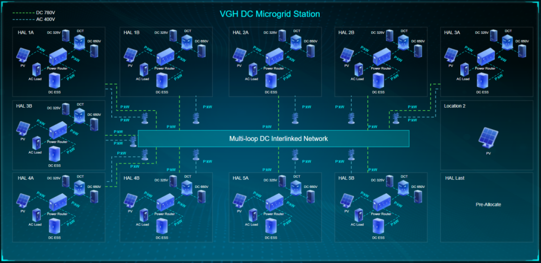 該項目直面?zhèn)鹘y(tǒng)交流供電模式笨重低效這一難題,以突破性技術(shù)構(gòu)建了一套前所未有的綠色供電方案,如全直流多環(huán)網(wǎng)組網(wǎng),大幅降低能量轉(zhuǎn)換損耗,光儲并/離網(wǎng)直流直供,直接供給建筑內(nèi)的直流負(fù)載,以及電能路由器集群智能控制(核心突破)、內(nèi)部自洽(微網(wǎng)內(nèi))、外部互濟(jì)(微網(wǎng)間)等,可從容應(yīng)對復(fù)雜多變的運行工況。