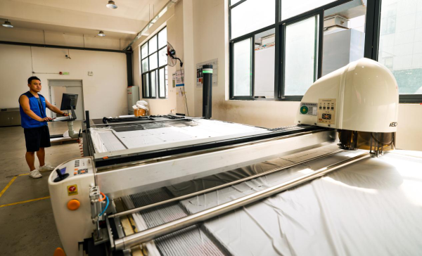 自動裁剪機(jī)如同精準(zhǔn)的“剪刀手”,將原材料按設(shè)計圖紙裁切成規(guī)整部件,一天即可完成兩千個板材的裁剪;熱合機(jī)以恒定的溫度與壓力,讓產(chǎn)品接縫處牢固又平整……隨著自動裁剪機(jī)、自動點焊機(jī)、熱合機(jī)等自動化設(shè)備的引進(jìn),原來一個要40多人的車間現(xiàn)只需要12人左右,不僅如此,ERP、MES、WMS等軟件系統(tǒng)高效聯(lián)動,打通了生產(chǎn)加工的各個環(huán)節(jié),實現(xiàn)智慧管控、能源節(jié)能管控、智慧采購、智慧排產(chǎn)、智慧生產(chǎn)、智能倉儲。