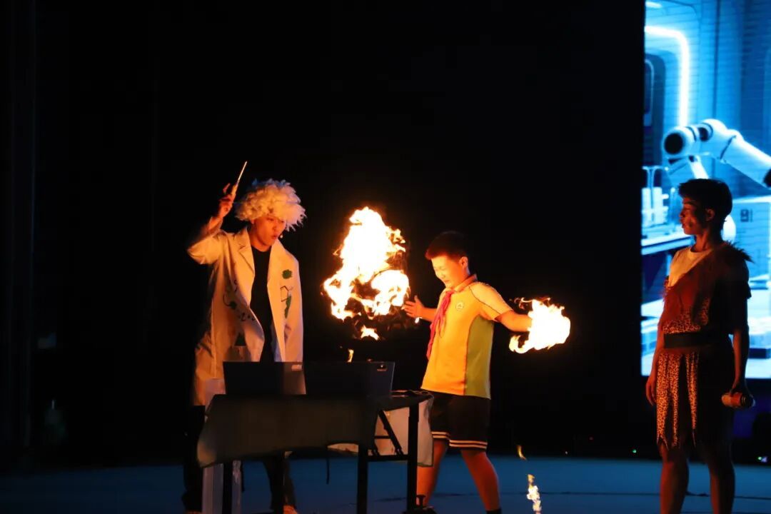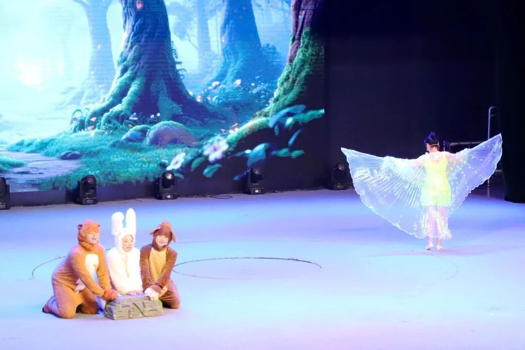 活動(dòng)現(xiàn)場(chǎng),山東省科技館巡演團(tuán)隊(duì)為學(xué)生們帶來了科普劇《森林里的光》和科學(xué)實(shí)驗(yàn)劇《冬日焰火》。此次演出采用科學(xué)實(shí)驗(yàn)與演出劇情相結(jié)合的方式,在劇情中加入了相關(guān)科學(xué)小實(shí)驗(yàn),讓學(xué)生們更加直觀地了解相關(guān)科學(xué)原理,學(xué)習(xí)相應(yīng)的科學(xué)知識(shí)。演出中,還邀請(qǐng)了部分師生代表上臺(tái)體驗(yàn)了科學(xué)小實(shí)驗(yàn),精彩的演出和奇特的實(shí)驗(yàn)贏得了學(xué)生們的陣陣驚呼和掌聲。