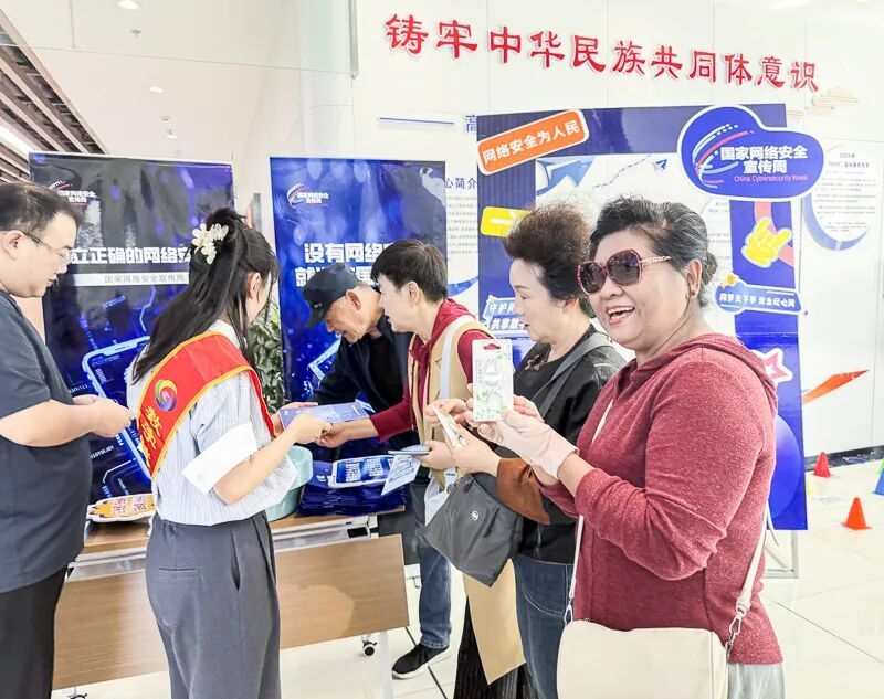 一旁的網(wǎng)絡(luò)安全主題打卡墻同樣人氣十足,墻面上印著“守護個人信息,共建安全網(wǎng)絡(luò)”等標(biāo)語,搭配生動的卡通警示圖案,吸引不少人拍照打卡,還主動轉(zhuǎn)發(fā)到朋友圈,成了活動的“義務(wù)宣傳員”。