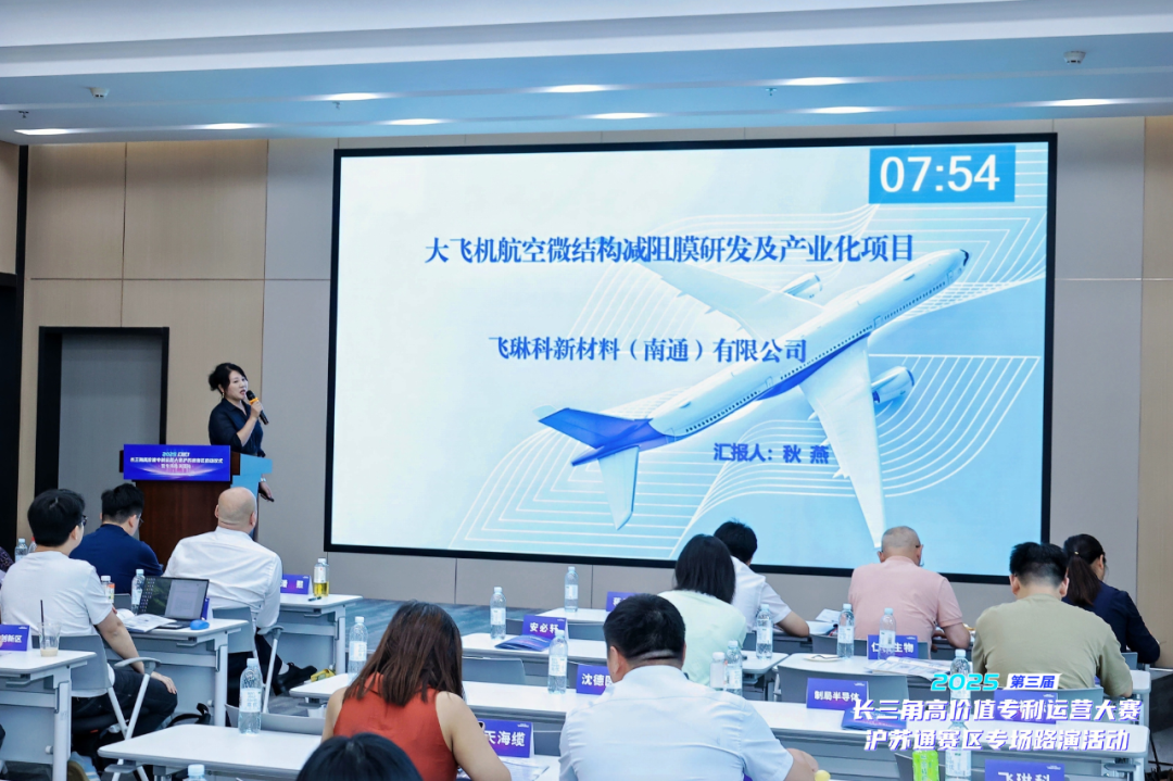 飛琳科新材料(南通)有限公司成立于2024年1月。參賽專利是公司研制的一種表面具有精細(xì)微觀結(jié)構(gòu)的多層復(fù)合薄膜材料,基膜層各結(jié)構(gòu)采用優(yōu)質(zhì)原材料,擁有較傳統(tǒng)產(chǎn)品更為多元化的創(chuàng)新功能,通過改變機(jī)體表面附面層的微小湍流流動(dòng)結(jié)構(gòu)來減小摩擦阻力,從而提高飛機(jī)的燃油效率,減少碳排放,提升經(jīng)濟(jì)性的同時(shí)具有保護(hù)飛機(jī)漆面的功能,可提高飛機(jī)的使用壽命,降低運(yùn)營維護(hù)成本。