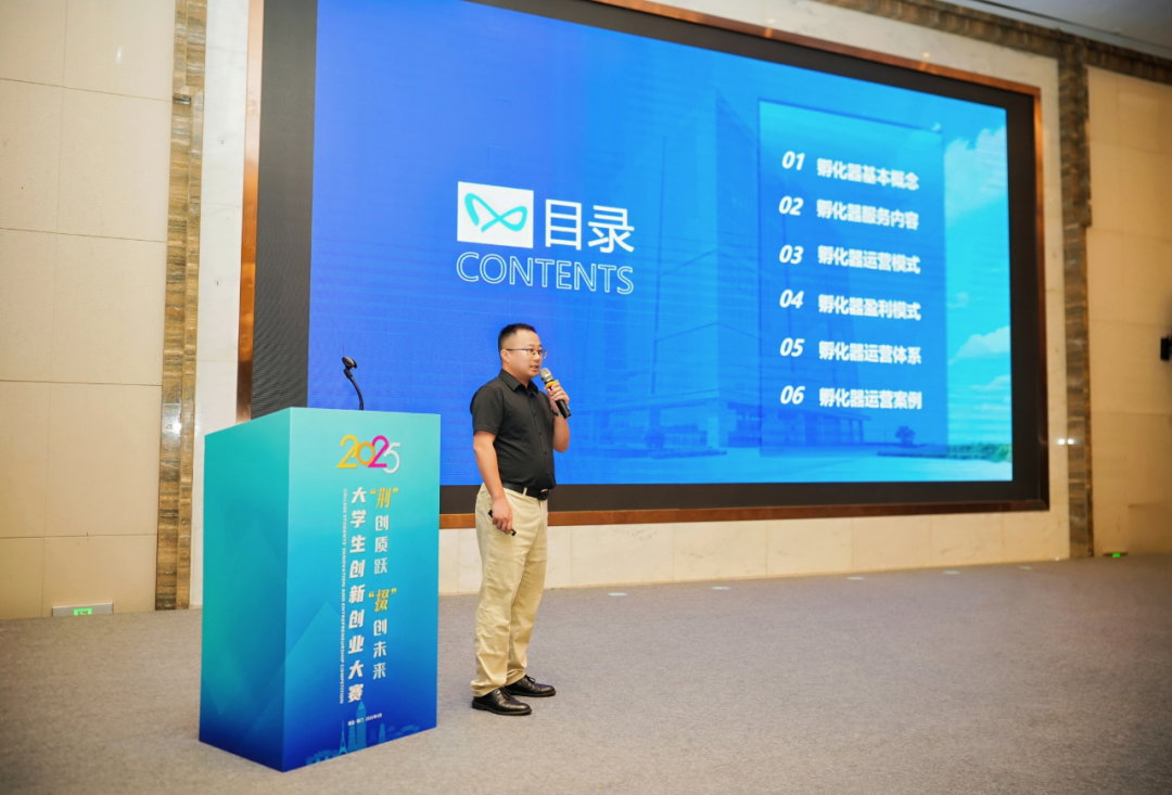 為更好地提升孵化創(chuàng)新能力,本次大賽特別設(shè)置了專家授課環(huán)節(jié)。恩施安貝森科技服務(wù)股份有限公司董事長王海帶來《孵化器運(yùn)營與管理》的分享,既有理論高度,也為后續(xù)孵化器培育企業(yè)、推進(jìn)申報(bào)工作提供了有力指導(dǎo)。
