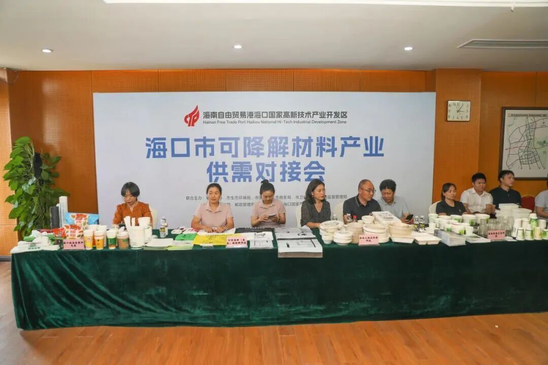 5月,海口高新區(qū)聯(lián)合多部門舉辦的??谑锌山到獠牧袭a(chǎn)業(yè)供需對(duì)接會(huì)在美安生態(tài)科技新城舉行,為園區(qū)8家可降解材料生產(chǎn)企業(yè)與海口市醫(yī)院診所、商超、餐飲、農(nóng)貿(mào)市場(chǎng)、物流企業(yè)等80余家企、事業(yè)單位代表搭建起合作交流的平臺(tái)。
