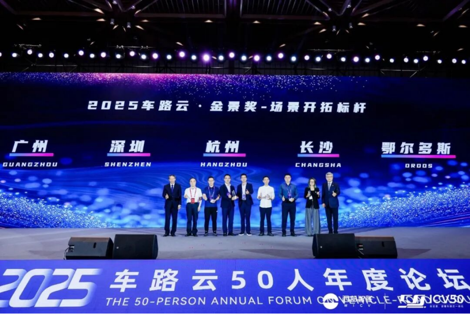 獲得“2025車路云·金景獎(jiǎng)”的城市有:廣州、深圳、杭州、長沙、鄂爾多斯。