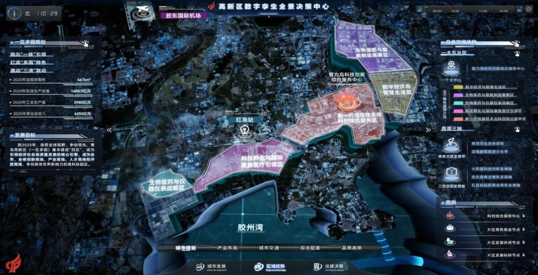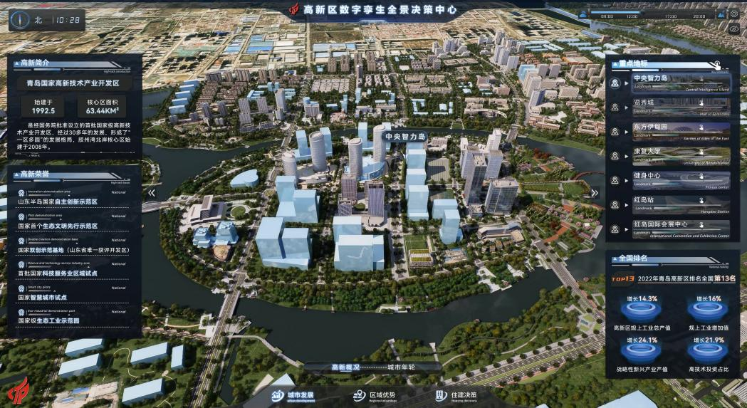在此基礎(chǔ)上,青島高新區(qū)還創(chuàng)新打造“數(shù)字孿生全景決策中心”與“重大工程進(jìn)度遙感監(jiān)測系統(tǒng)”。兩大系統(tǒng)如同“智慧之眼”與“決策之手”,實現(xiàn)對重點項目的實時監(jiān)管與動態(tài)評估,為城市運行提供可視化、可預(yù)測、可調(diào)控的智能支撐,助力城市治理者精準(zhǔn)把握運行細(xì)節(jié),及時優(yōu)化策略,推動實現(xiàn)精準(zhǔn)、高效、有序治理。
