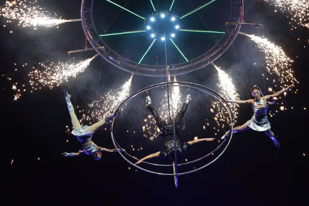 高空威亞秀《賽博未來(lái)GO高新》驚艷亮相,演員們身著特色服裝,在空中舒展身姿,時(shí)而輕盈盤旋,時(shí)而快速穿梭,搭配著科技感十足的背景畫面,將安康高新區(qū)的未來(lái)活力與創(chuàng)新精神展現(xiàn)得淋漓盡致,引得觀眾紛紛拿出手機(jī)記錄這震撼瞬間。