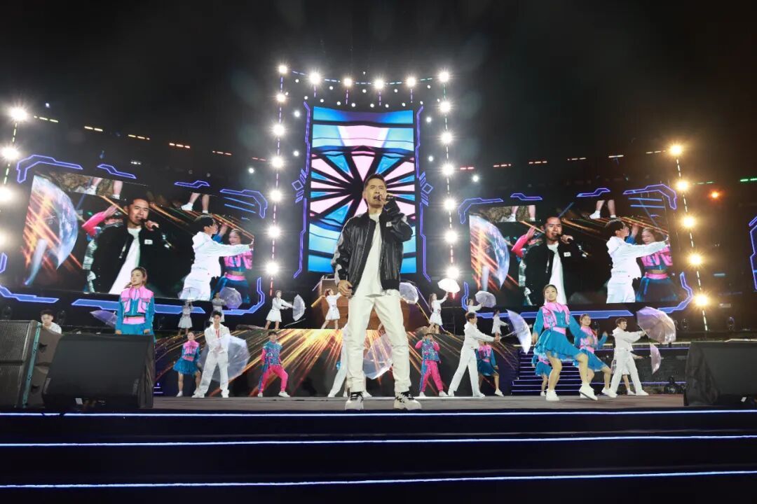 壓軸登場(chǎng)的嘉賓歌手黃征,更是將現(xiàn)場(chǎng)氛圍推向高潮,現(xiàn)場(chǎng)演唱了《愛情諾曼底》《望鄉(xiāng)》《奔跑》等經(jīng)典歌曲,熟悉的旋律引發(fā)全場(chǎng)大合唱,觀眾們揮舞著手中的熒光棒、打開手機(jī)閃光燈,跟著節(jié)奏擺動(dòng)身體,現(xiàn)場(chǎng)變成了一片歡樂(lè)的海洋。