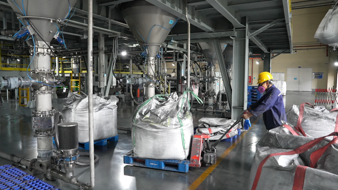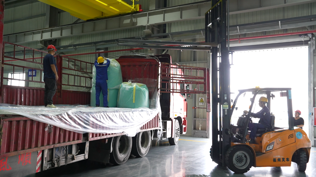 在海創(chuàng)尚緯倉庫,工人正將一批人造石墨負極材料產(chǎn)品裝車,這批產(chǎn)品將陸續(xù)發(fā)往全國各地的客戶手中。距離試生產(chǎn)僅僅不到一年時間,如今海創(chuàng)尚緯各產(chǎn)線全線貫通,企業(yè)產(chǎn)能正穩(wěn)步爬坡并有效發(fā)揮。