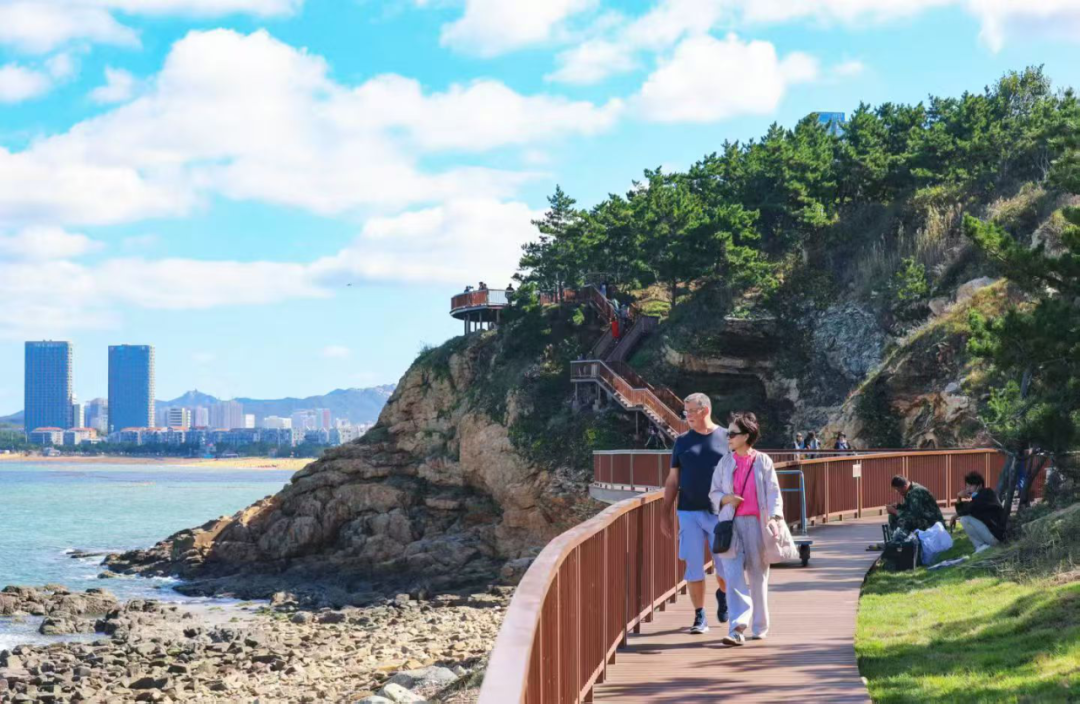 9月底,火炬八街至小石島濱海木棧道正式建成并開放。這條鑲嵌在海岸線上的景觀廊道,串聯(lián)起火炬八街、國際海水浴場、小石島等景區(qū)景點,成為激活濱海旅游的“黃金紐帶”。