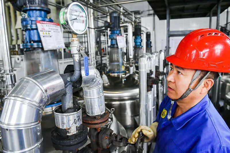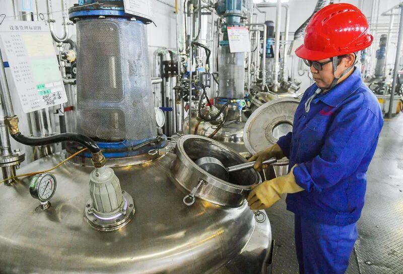 10月13日,在新疆天山制藥工業(yè)有限公司車間,工作人員正在生產(chǎn)甘草次酸。在這個生產(chǎn)過程中會產(chǎn)生酸性廢水,以往這些廢水只能排放無法利用,但企業(yè)經(jīng)過工藝改造,探索出“甘草酸粉含酸廢水制造低含量甘草膏”的專利技術(shù),通過調(diào)整pH值、濃縮和美拉德反應(yīng)等步驟,將酸性廢水轉(zhuǎn)化為可用于出口的低含量甘草膏,實現(xiàn)了變廢為寶,從源頭減少污水排放。