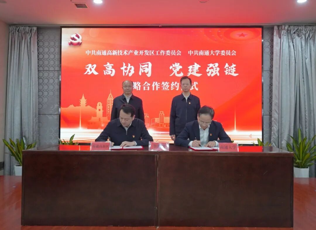 12月4日下午,南通高新區(qū)與南通大學聯(lián)合開展“雙高協(xié)同·黨建強鏈”活動。活動中,雙方簽訂了《“雙高協(xié)同·黨建強鏈”戰(zhàn)略合作協(xié)議》,并展開系列活動。南通市委常委、通州區(qū)委書記、南通高新區(qū)黨工委書記張建華出席活動并見簽,南通大學黨委書記楊宇民致辭,通州區(qū)委副書記、南通高新區(qū)黨工委常務副書記吳冰冰參加活動并為聯(lián)合攻堅黨小組授牌。