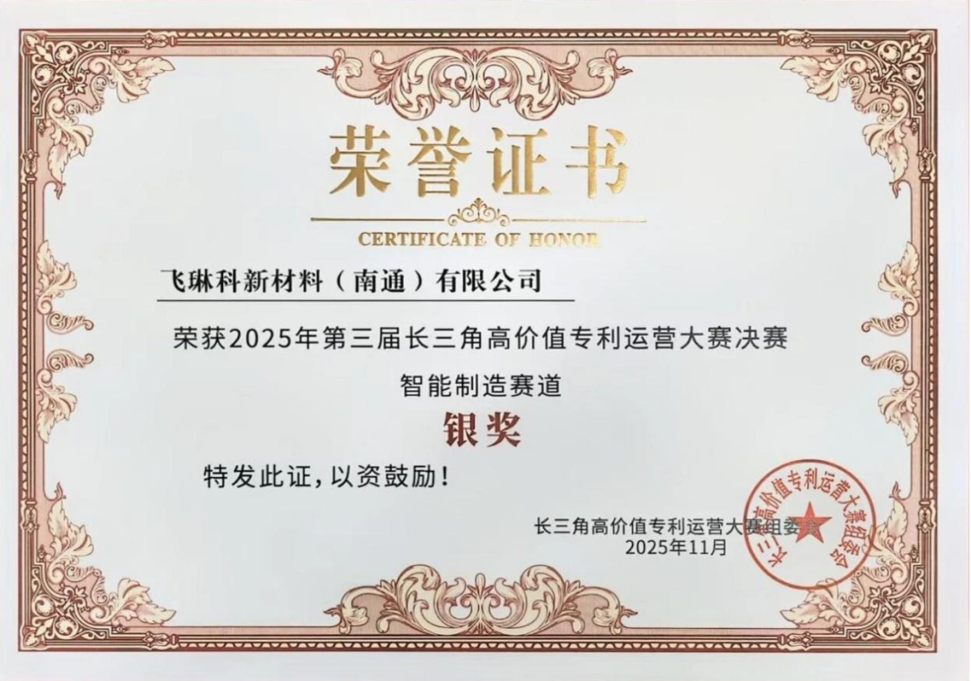 此次獲獎的兩大賽事均為行業(yè)內(nèi)極具影響力的創(chuàng)新成果展示與實力比拼平臺:中國創(chuàng)新創(chuàng)業(yè)大賽匯聚了全國37個地方賽區(qū)197個新材料領(lǐng)域優(yōu)秀項目,飛琳科以市賽第一、省賽二等獎的優(yōu)異成績脫穎而出,充分彰顯了其技術(shù)創(chuàng)新性與市場應用前景;長三角高價值專利運營大賽及沿滬寧產(chǎn)業(yè)創(chuàng)新帶高價值專利運營大賽則聚焦優(yōu)質(zhì)專利轉(zhuǎn)化,飛琳科憑借完整的專利布局、突出的技術(shù)創(chuàng)新力及成熟的運營轉(zhuǎn)化能力斬獲重要獎項,印證了高新區(qū)企業(yè)在知識產(chǎn)權(quán)保護與成果轉(zhuǎn)化方面的扎實成效。