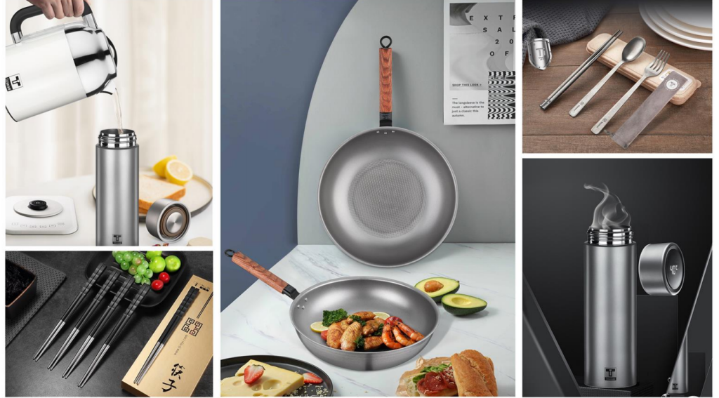 自主品牌,直面消費者。2019年,鼎興公司啟動自主品牌“鈦藝”的運營,專注于純鈦餐廚具、水具等健康生活用品。通過電商平臺、直播帶貨、線下展會等全渠道營銷,讓“航天級材料”制成的純鈦炒鍋、湯鍋、水杯等產(chǎn)品,直接觸達國內(nèi)追求品質(zhì)與健康的消費者。