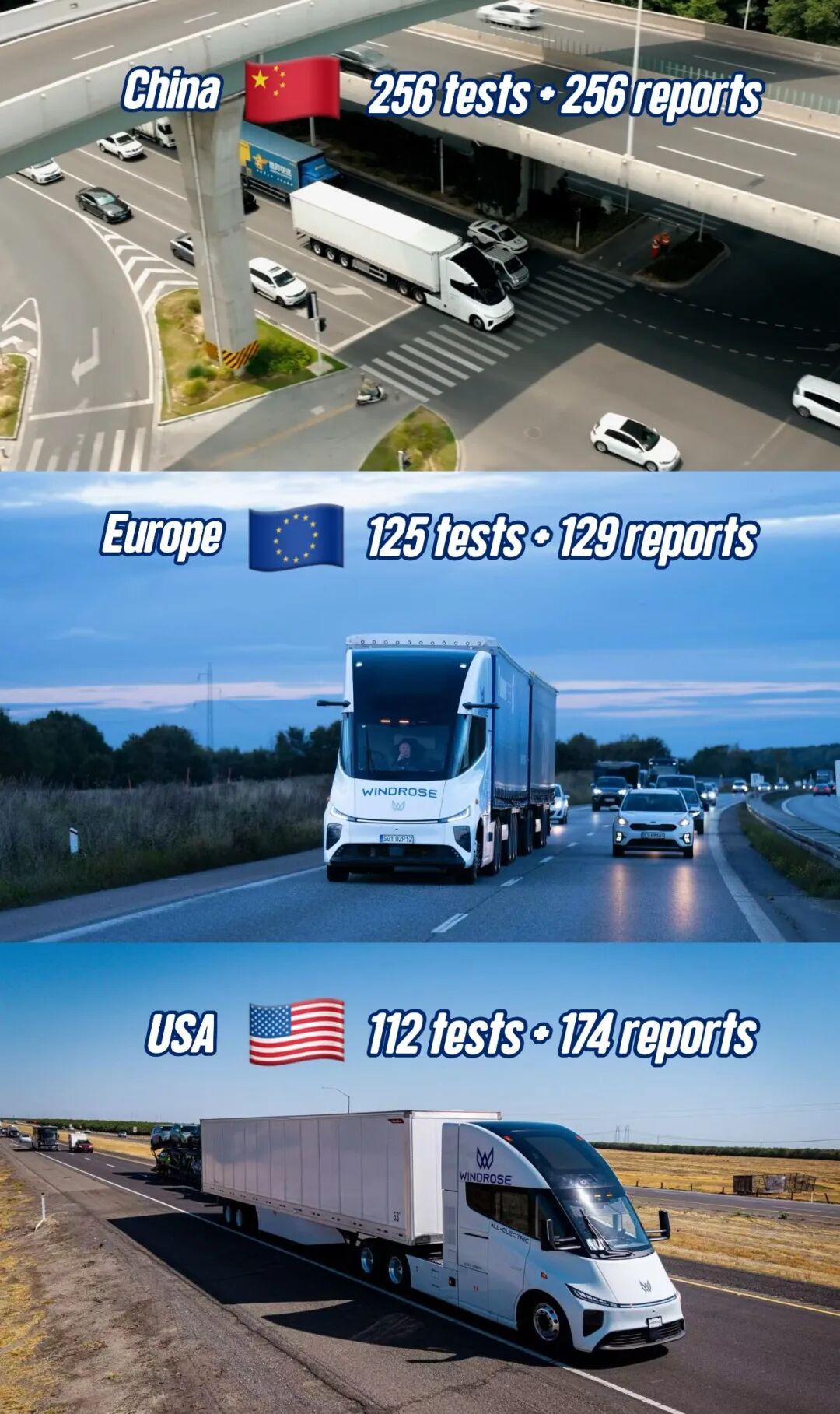 此次認證的落地,是葦渡科技全球化布局的關(guān)鍵一步。截至2025年底,葦渡Windrose已完成覆蓋全球30個國家的三大市場認證體系搭建,通過中國256項、歐洲125項、美國112項嚴苛測試,累計斬獲559項證書與報告。其中歐盟WVTA認證作為歐洲商用車市場最高級別準入標準,印證了產(chǎn)品在安全、環(huán)保、性能等方面的頂尖實力。