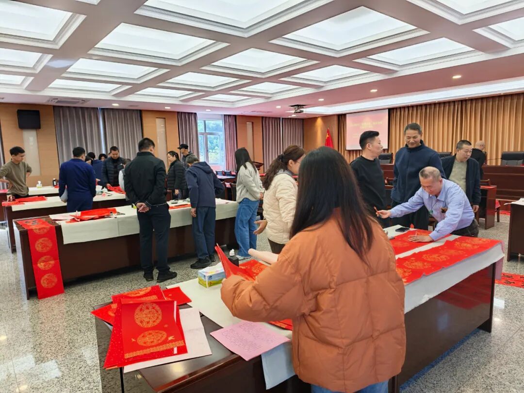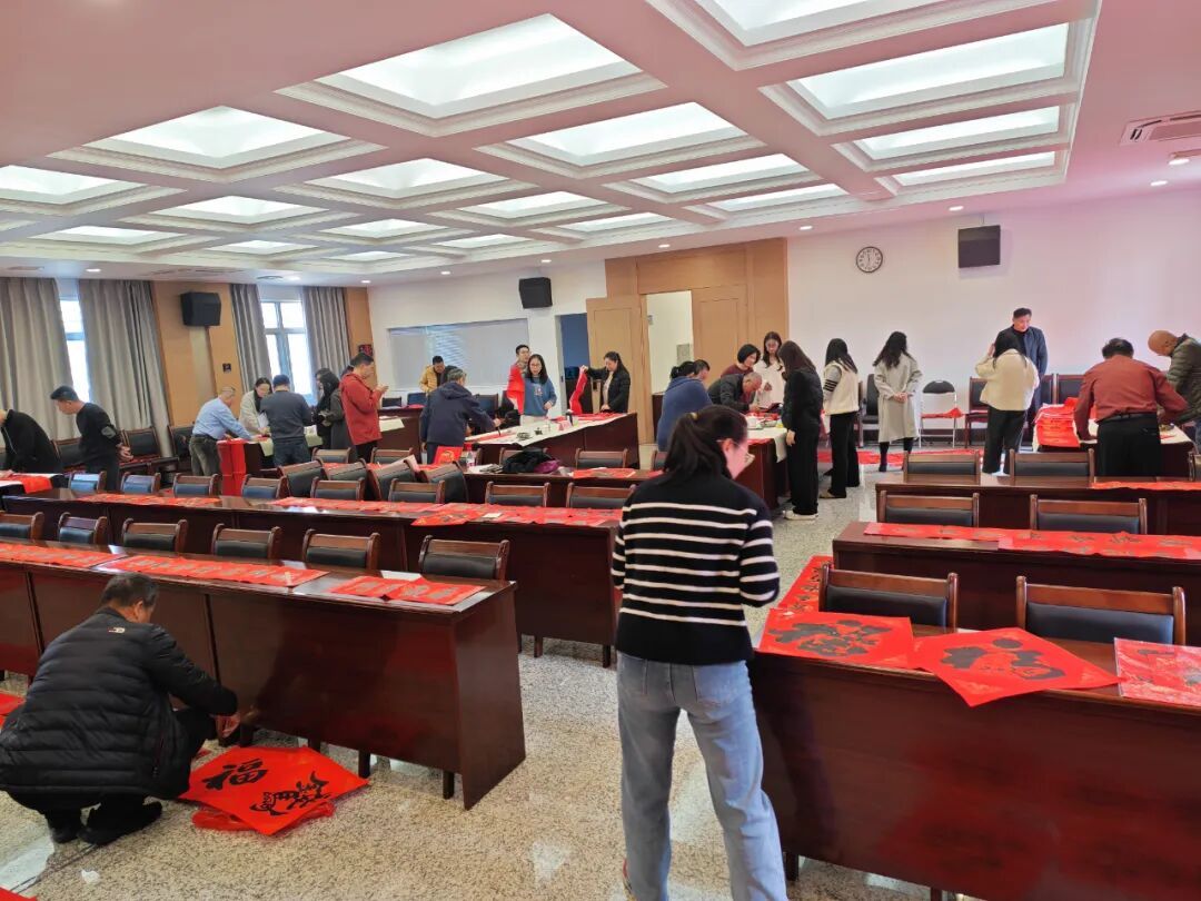現(xiàn)場干部職工或凝神駐足,欣賞精湛筆墨技藝、品評春聯(lián)美好寓意;或親手接過題寫的春聯(lián)與“?!弊窒ば氖蘸?;或圍聚桌前挑選心儀作品,暢談新年愿景與期盼,氣氛熱烈而溫馨。