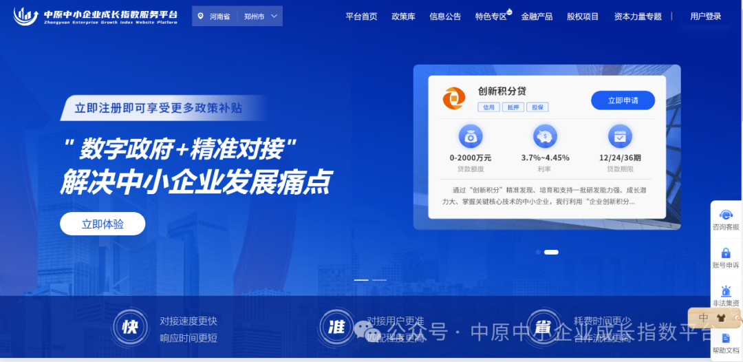 中原中小企業(yè)成長指數(shù)服務(wù)平臺(tái)(以下簡稱“指數(shù)平臺(tái)”)作為鄭州高新區(qū)科技金融服務(wù)體系金融需求端的重要抓手,將緊跟國家戰(zhàn)略部署,立足“數(shù)據(jù)驅(qū)動(dòng)、智能匹配、精準(zhǔn)服務(wù)”定位,以服務(wù)中小企業(yè)提質(zhì)、科技企業(yè)突破、區(qū)域經(jīng)濟(jì)協(xié)同為目標(biāo),為“十五五”時(shí)期區(qū)域產(chǎn)業(yè)高質(zhì)量發(fā)展注入數(shù)字動(dòng)能。