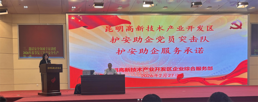為切實(shí)抓好春節(jié)后復(fù)工復(fù)產(chǎn)安全防范工作,2月27日,昆明高新區(qū)召開(kāi)2026年春節(jié)復(fù)工復(fù)產(chǎn)專(zhuān)題黨課暨“安全生產(chǎn)第一課”培訓(xùn)會(huì),特邀安全專(zhuān)家授課,約90家企業(yè)的主要負(fù)責(zé)人、安全管理員、黨組織書(shū)記及黨員代表共122人參會(huì),其中黨員48名。