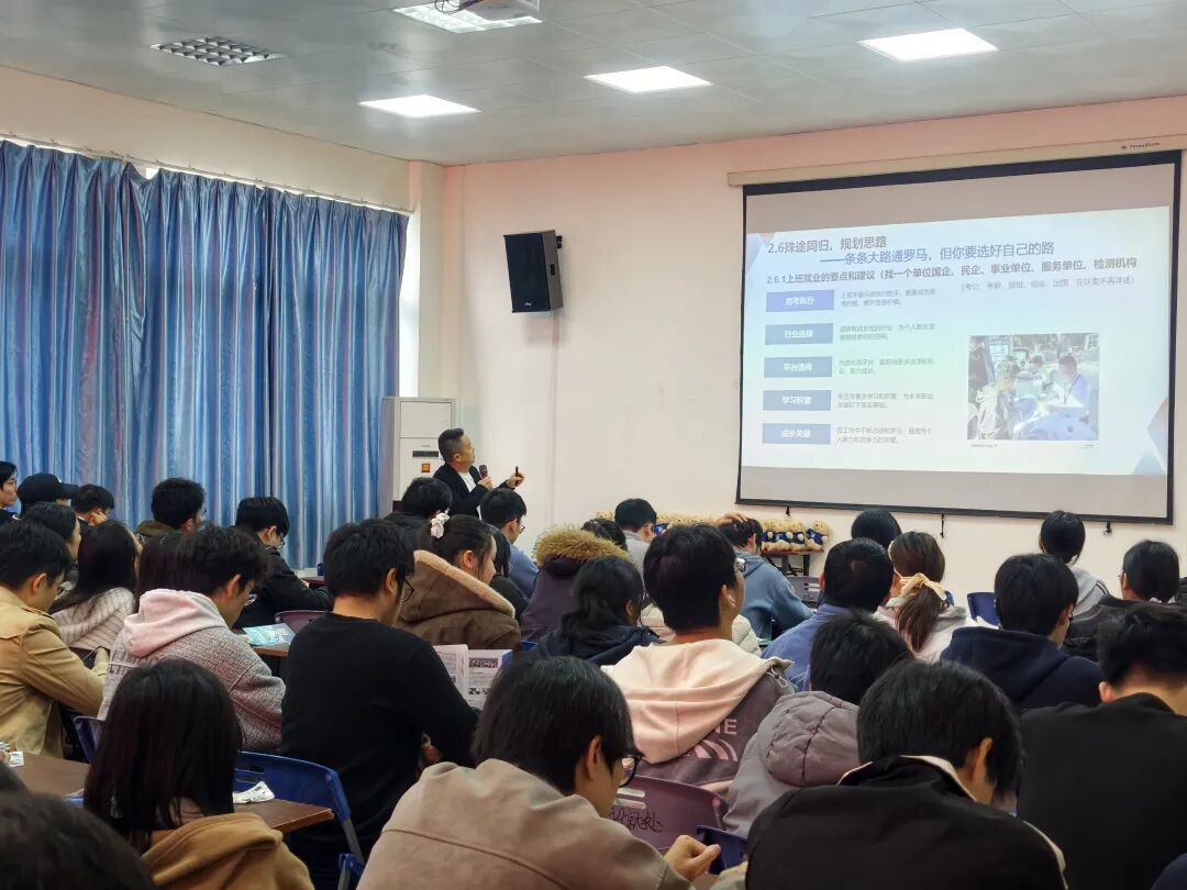 此外,清遠(yuǎn)高新區(qū)招才引智團(tuán)還在桂林理工大學(xué)、昆明理工大學(xué)組織清遠(yuǎn)專場(chǎng)宣講會(huì)。其中,在桂林理工大學(xué)宣講會(huì)上,廣東聚石化學(xué)股份有限公司黨支部書記楊正高結(jié)合自身職場(chǎng)經(jīng)歷、企業(yè)發(fā)展歷程及行業(yè)發(fā)展趨勢(shì),以《先識(shí)己,再擇路》為主題開展職業(yè)規(guī)劃分享,引導(dǎo)畢業(yè)生樹立正確的就業(yè)觀、擇業(yè)觀,找準(zhǔn)自身定位,規(guī)劃職業(yè)發(fā)展路徑。