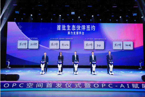 現(xiàn)場簽約環(huán)節(jié)亮點紛呈,7臺機器人助手作為特殊“簽約代表”,見證了Hi-OPC空間與首批生態(tài)伙伴的合作時刻。Hi-OPC空間先后與光合組織、恒品極算等6家技術支持單位,寧波寧數(shù)智算、三大運營商共4家算力支撐平臺,寧波普智未來、和利時卡優(yōu)倍等6家鏈主企業(yè),以及中國銀行、寧波銀行等6家金融機構完成簽約。同時,靈算科技、繪夢文化科技等6家首批擬入駐OPC企業(yè)代表完成簽約,首批優(yōu)質創(chuàng)業(yè)力量正式落戶Hi-OPC空間。