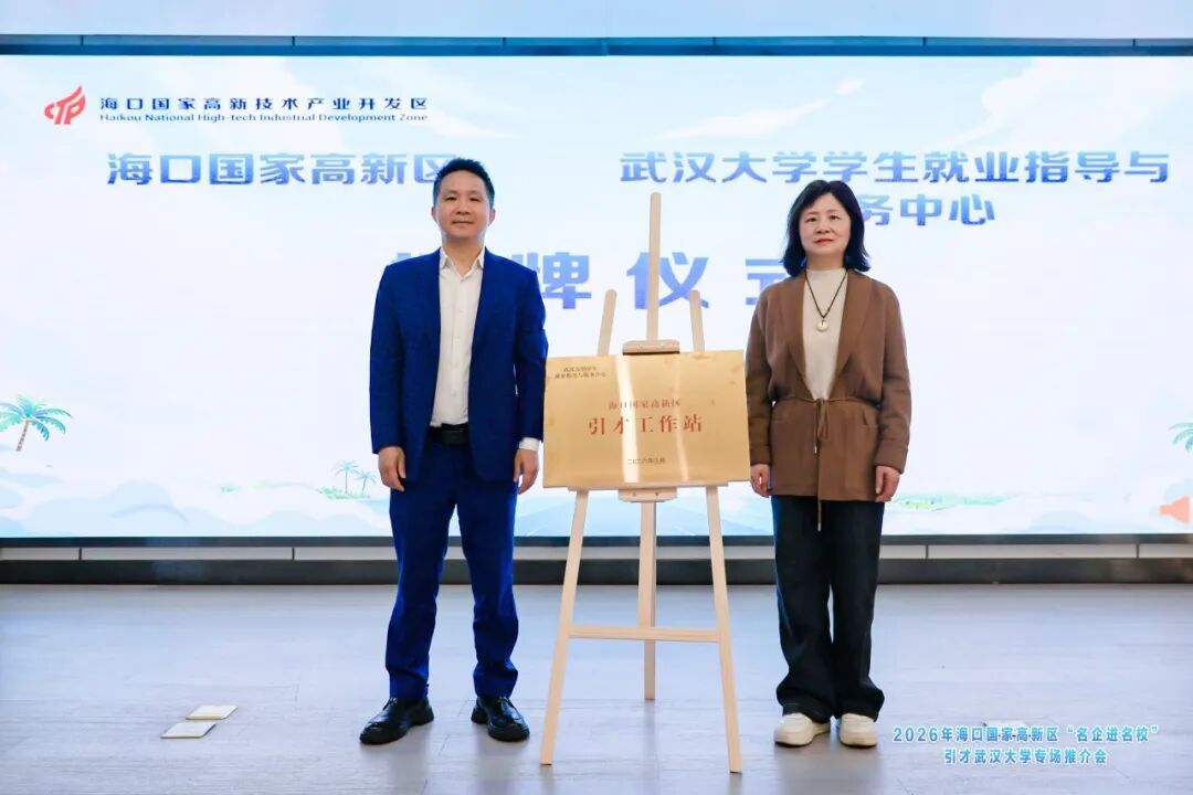 值得一提的是,在??谑形M織部的大力支持下,此次招聘活動的區(qū)域人才合作成果豐碩。武漢大學向??谑惺谟琛叭瞬乓痉痘亍迸曝?,武漢大學學生就業(yè)與指導服務中心海口高新區(qū)引才工作站正式揭牌,市、區(qū)兩級通過與武漢大學建立長期、穩(wěn)定的合作平臺,將圍繞畢業(yè)生就業(yè)、實習實踐、人才培養(yǎng)與輸送等方面展開深度合作,推動從“引進人才”到“共同育人”的跨越進程。