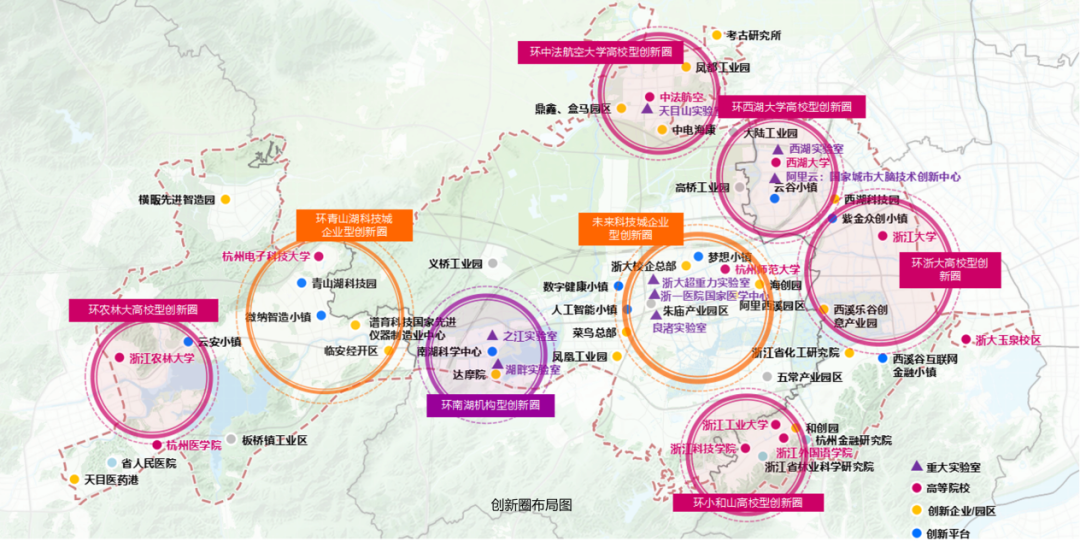 以文一西路為主動脈,杭州城西科創(chuàng)大走廊橫跨西湖、余杭、臨安三區(qū),東西長39公里,規(guī)劃面積約416平方公里,串起了紫金港科技城、未來科技城、青山湖科技城三個省級高新區(qū)。