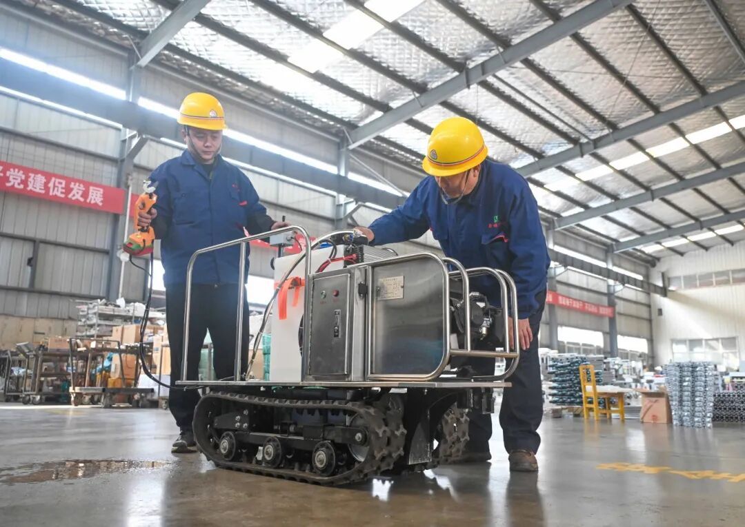 近日,在位于洛陽市澗西區(qū)的洛陽易通電氣科技有限公司生產(chǎn)車間內(nèi),企業(yè)自主研發(fā)的智能煙草田間植保運(yùn)輸機(jī)完成檢測,即將交付。