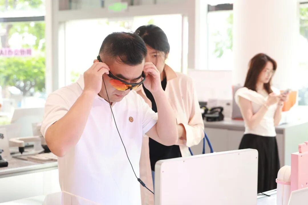AI運動拍攝眼鏡只需輕聲一句指令,便能完成導航、拍照、信息查詢;無弦吉他通過觸控板一鍵彈出和弦,零基礎也能秒變“音樂達人”……在不同的展區(qū),代表們親自上手體驗各類“黑科技”,與現(xiàn)場技術人員熱烈交流,沉浸式感受科技帶來的驚喜與便利。