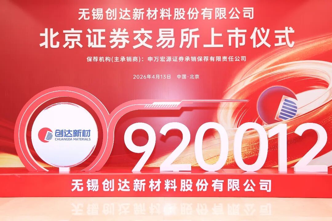 4月13日,無(wú)錫創(chuàng)達(dá)新材料股份有限公司在北京證券交易所掛牌上市。
