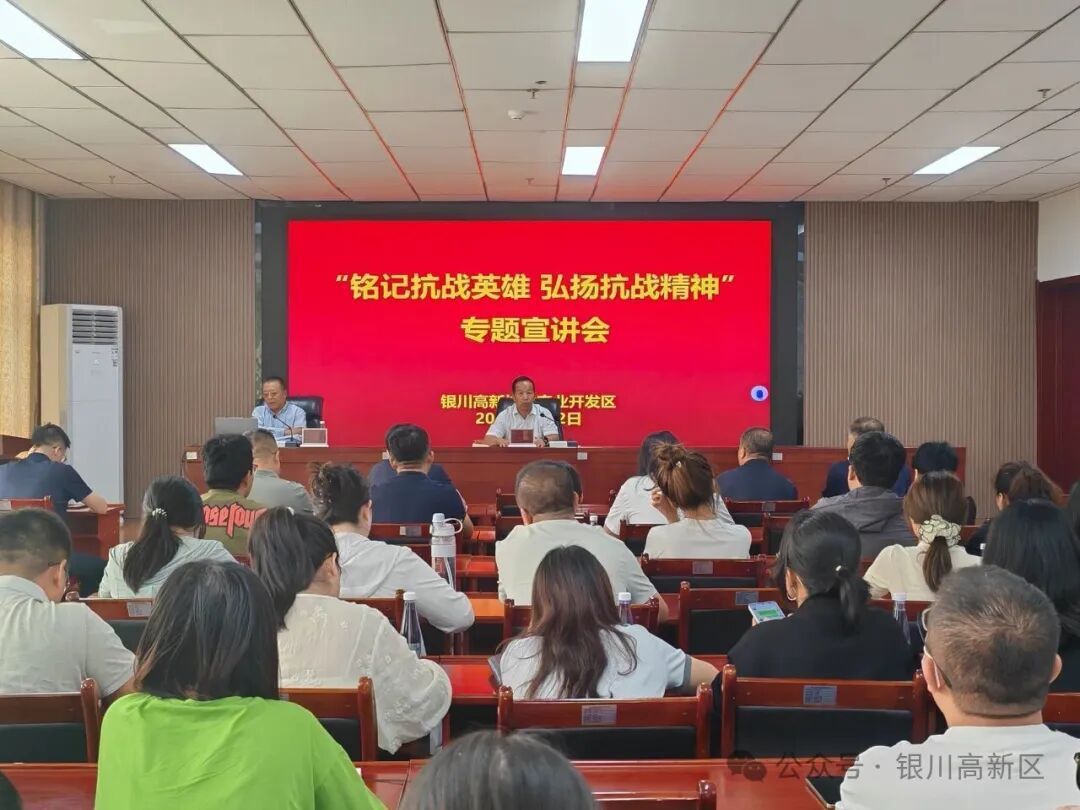 9月2日,銀川高新區(qū)邀請寧夏回族自治區(qū)黨委老干部局“塞上金秋”宣講團骨干成員王軍同志開展“銘記抗戰(zhàn)英雄 弘揚抗戰(zhàn)精神”專題宣講,銀川高新區(qū)機關(guān)和企業(yè)黨員干部職工60余人參加。