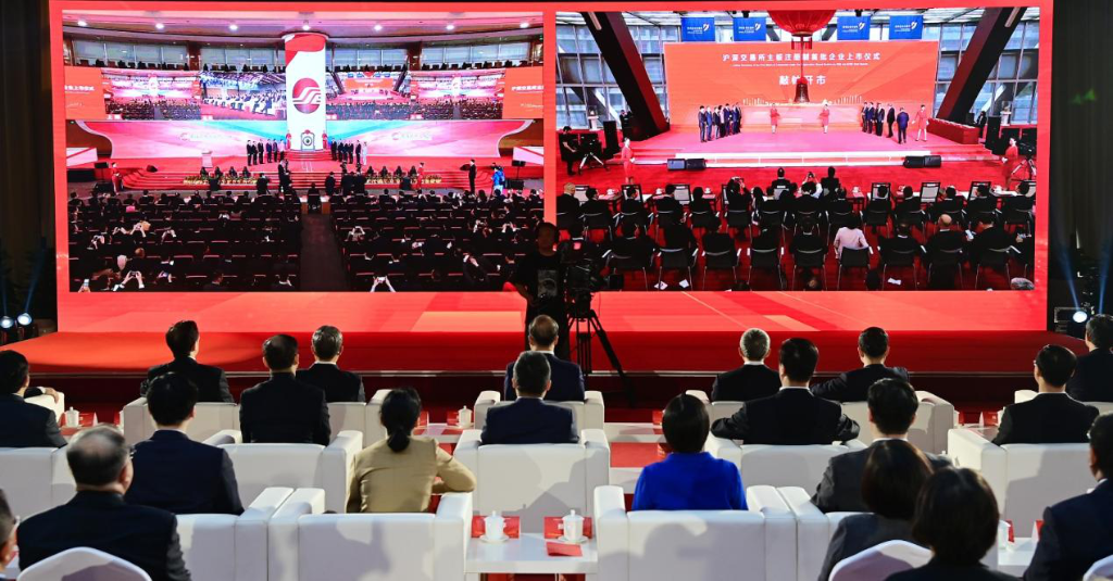 2023年4月10日,在滬深交易所主板注冊(cè)制首批企業(yè)上市儀式北京分會(huì)場(chǎng),與會(huì)嘉賓通過屏幕實(shí)時(shí)觀看滬深兩地交易所上市儀式。新華社記者李賀 攝