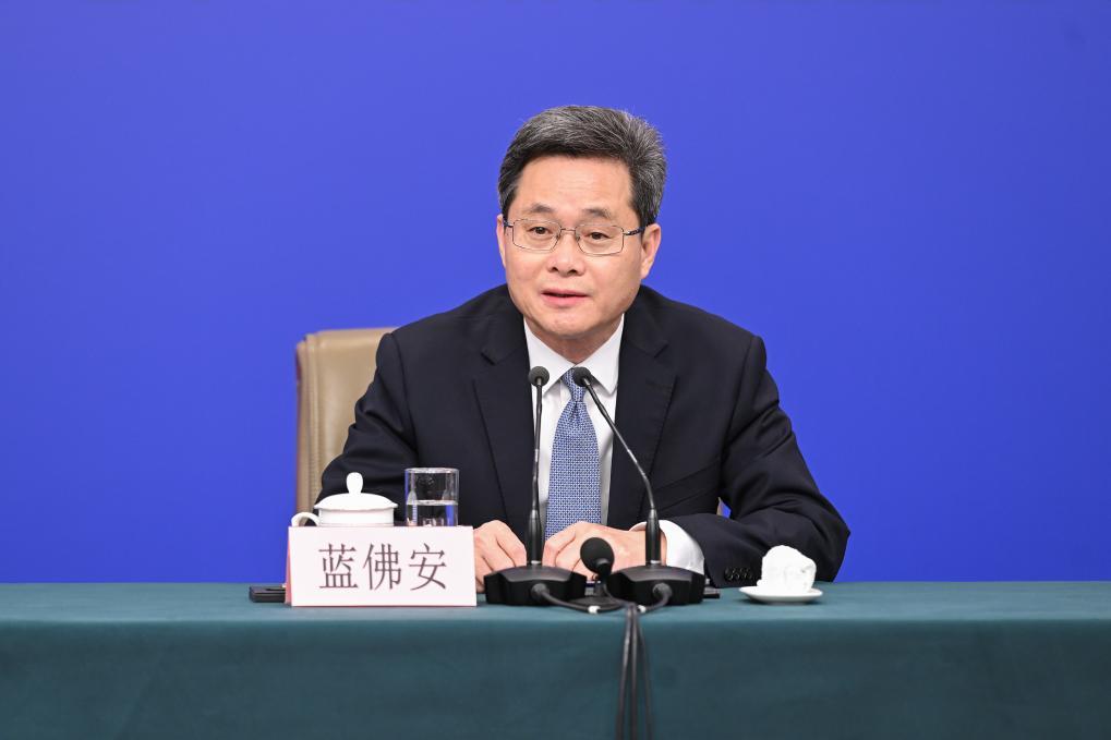 3月6日,十四屆全國人大三次會議在北京梅地亞中心新聞發(fā)布廳舉行記者會。國家發(fā)展和改革委員會主任鄭柵潔、財政部部長藍(lán)佛安、商務(wù)部部長王文濤、中國人民銀行行長潘功勝、中國證券監(jiān)督管理委員會主席吳清就發(fā)展改革、財政預(yù)算、商務(wù)、金融證券等相關(guān)問題回答中外記者提問。這是藍(lán)佛安在回答記者提問。
