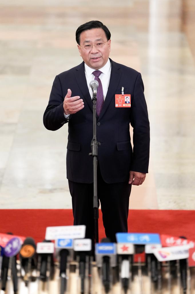 3月8日,第十四屆全國人民代表大會第三次會議第二場“部長通道”集中采訪活動在北京人民大會堂舉行。這是水利部部長李國英接受媒體采訪。