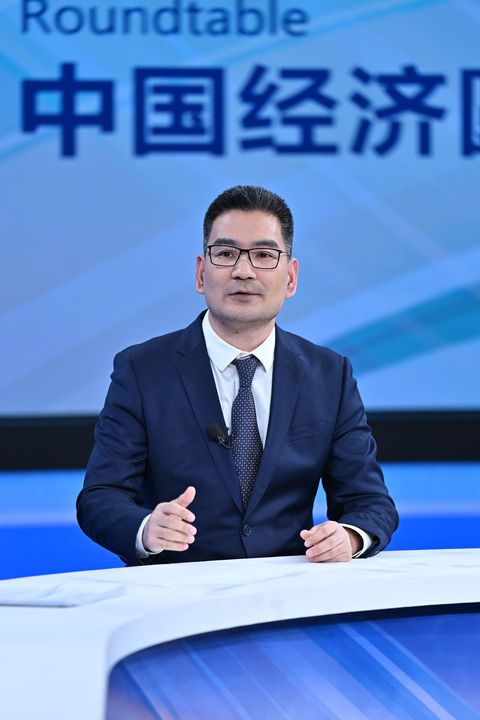 政府工作報告起草組成員、國務(wù)院研究室綜合一司副司長黃良浩在第十四期“中國經(jīng)濟圓桌會”錄制現(xiàn)場發(fā)言。新華社記者 李鑫 攝