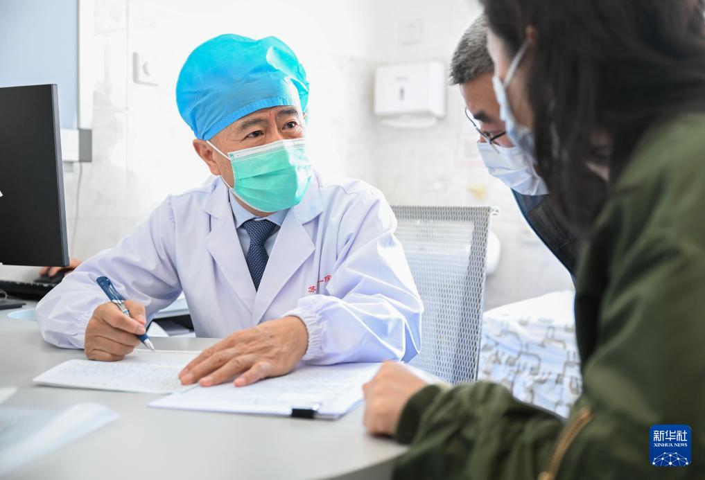 在蘇州大學(xué)附屬第一醫(yī)院血液科,全國政協(xié)委員、蘇州大學(xué)附屬第一醫(yī)院血液科主任吳德沛和患者家屬交談(2025年2月18日攝)。