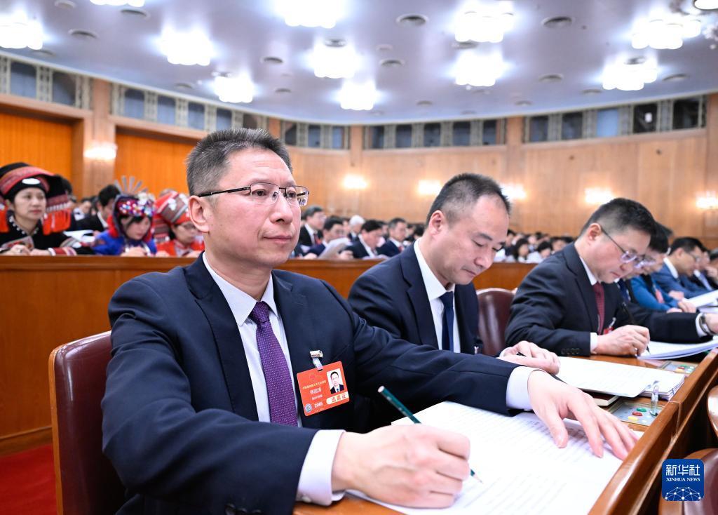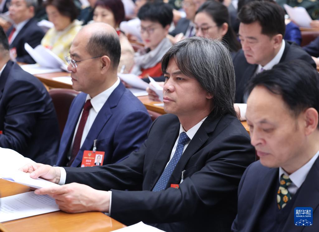 3月5日,全國人大代表、重慶紅江機(jī)械有限責(zé)任公司加工中心特級技師傅國濤在北京人民大會堂出席十四屆全國人大三次會議開幕會。