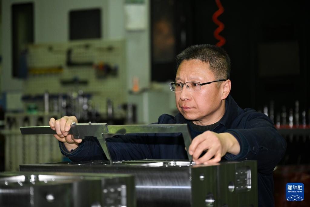 全國人大代表、重慶紅江機(jī)械有限責(zé)任公司加工中心特級技師傅國濤在重慶紅江機(jī)械有限責(zé)任公司機(jī)械加工車間工作(2025年2月11日攝)。