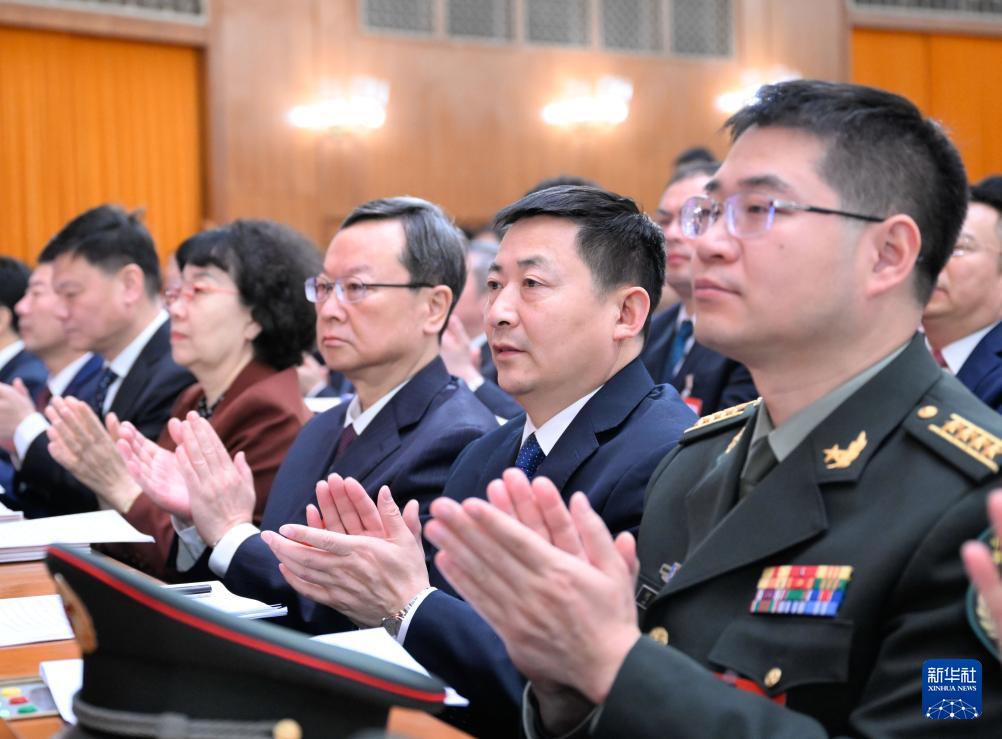 3月5日,全國人大代表、中石化第四建設(shè)有限公司工匠學(xué)院焊接教練張振連(右二)在北京人民大會堂出席十四屆全國人大三次會議開幕會。