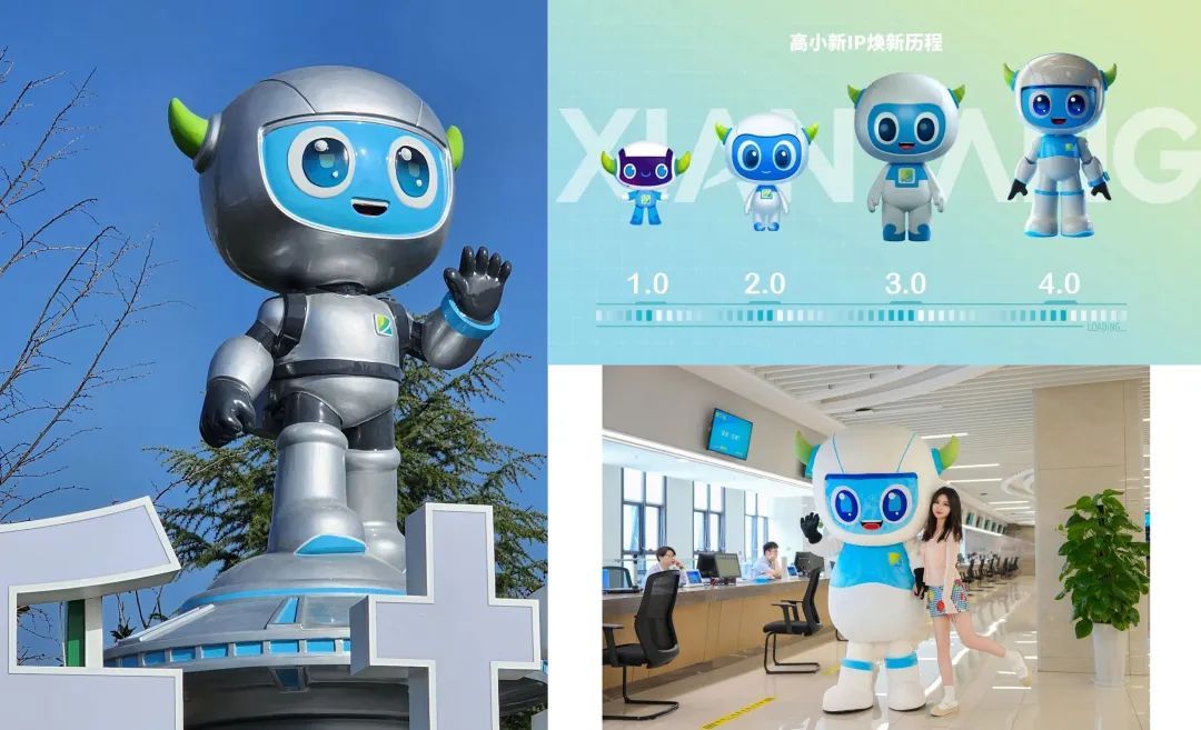 “高小新”角上的彩色漸變代表咸陽高新區(qū)三大產(chǎn)業(yè),突出了咸陽高新區(qū)的多元化。
