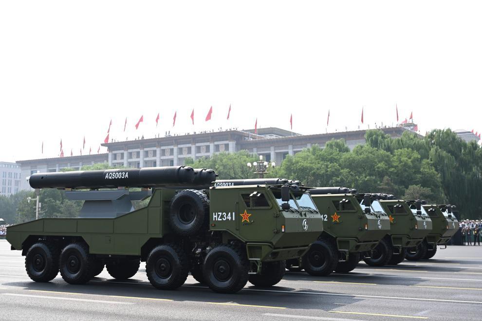 受閱的輕型魚雷、助飛魚雷、重型魚雷反應速度快、命中精度高、毀傷威力大,既能直擊要害打擊水面艦艇,又能潛入水下摧毀目標。新型特種水雷能夠自主識別、自主攻擊,是扼守要沖、奇襲制敵的“鎮(zhèn)海神兵”。