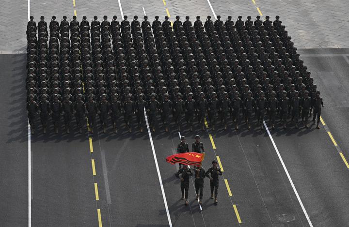 3日,武警部隊(duì)方隊(duì)以戰(zhàn)斗姿態(tài)接受檢閱。