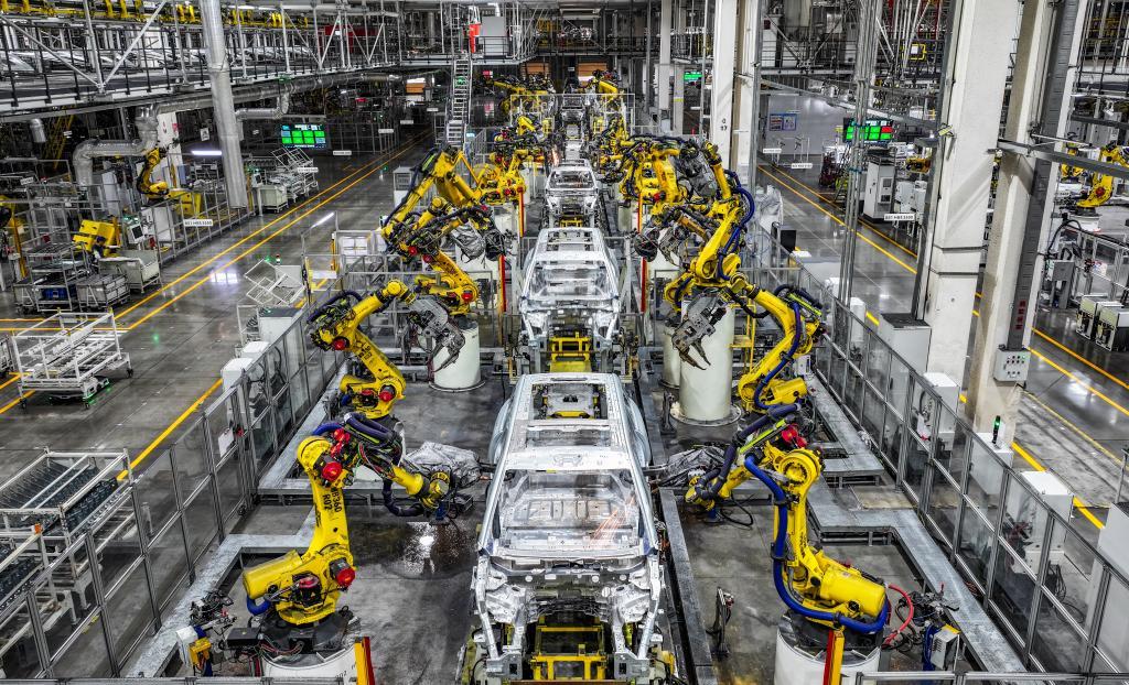 位于重慶市兩江新區(qū)的賽力斯汽車超級(jí)工廠拍攝的自動(dòng)化生產(chǎn)作業(yè)現(xiàn)場(2025年9月19日攝,無人機(jī)照片)?!笆奈濉币詠?,我國新能源汽車產(chǎn)業(yè)不斷提升核心競爭力,為經(jīng)濟(jì)高質(zhì)量發(fā)展注入澎湃動(dòng)能。