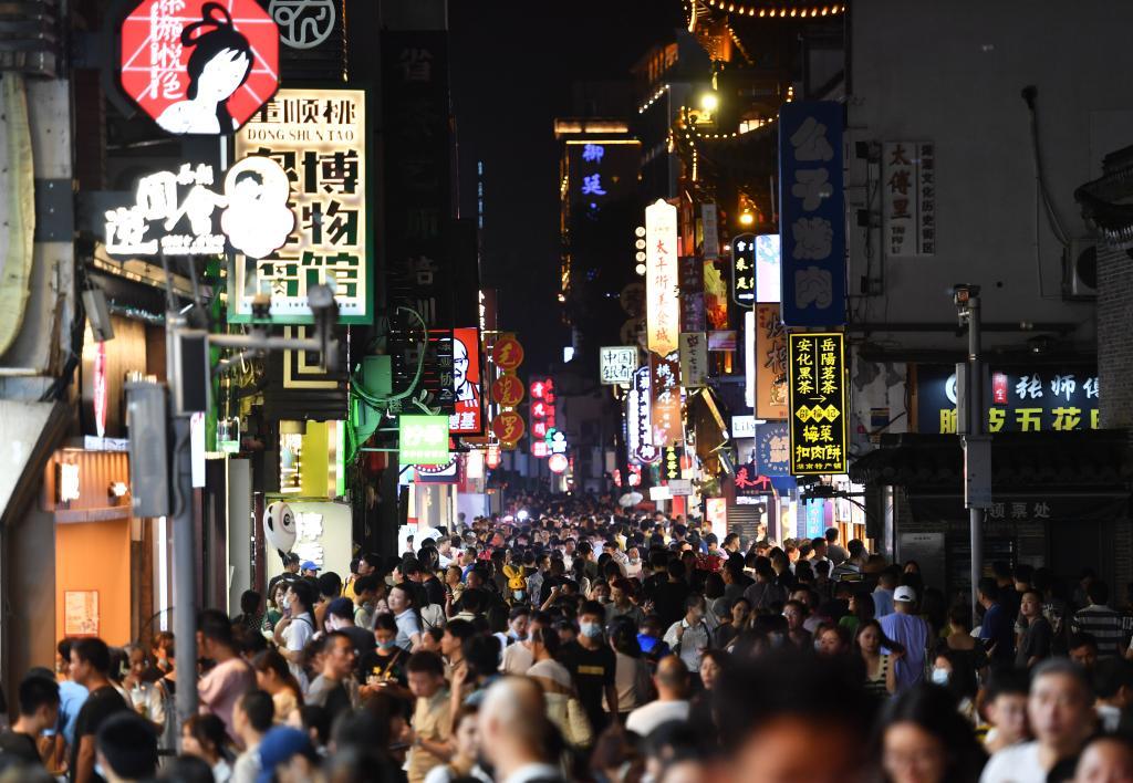 游客在長沙市太平古街休閑游覽(2022年7月29日攝)。“十四五”期間,非物質(zhì)文化遺產(chǎn)、文博IP等消費(fèi)爆款頻現(xiàn),城市漫步、中式茶飲等成為時(shí)尚消費(fèi)潮流,各地推行各類優(yōu)惠、補(bǔ)貼,釋放消費(fèi)潛能,激發(fā)市場活力。