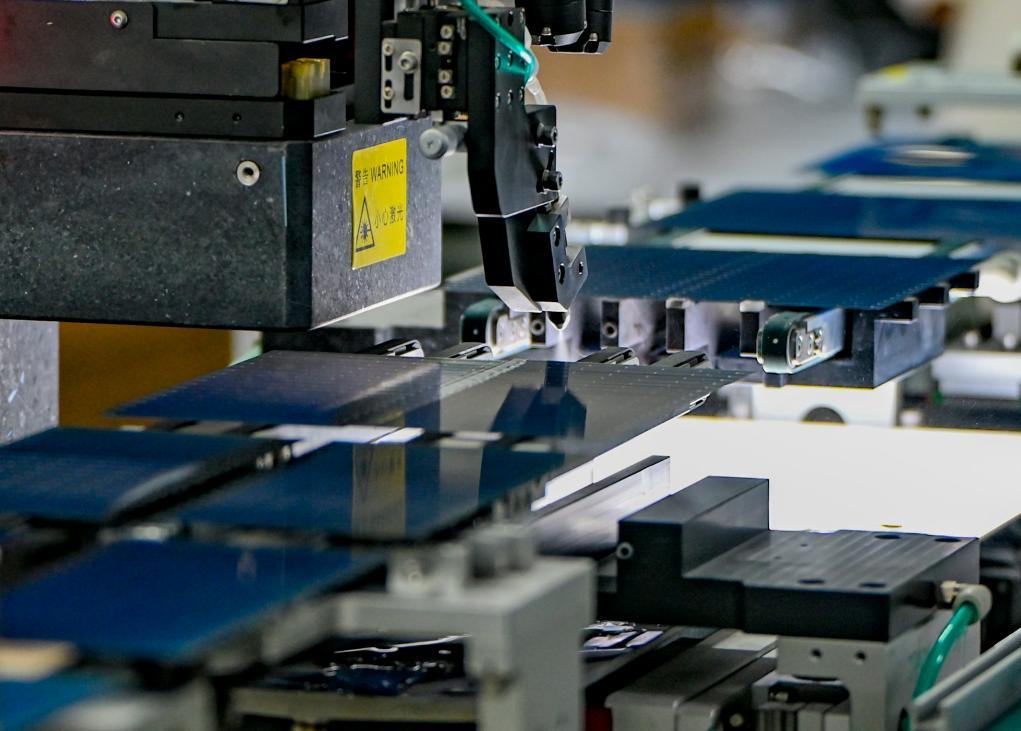 在新疆巴音郭楞蒙古自治州若羌縣一家新能源有限公司,全自動(dòng)劃片機(jī)在切割光伏電池片(2025年9月22日攝)。“十四五”期間,電動(dòng)汽車、光伏產(chǎn)品、鋰電池等“新三樣”產(chǎn)品2025年出口規(guī)模接近1.3萬億元,比2020年增長3.5倍。