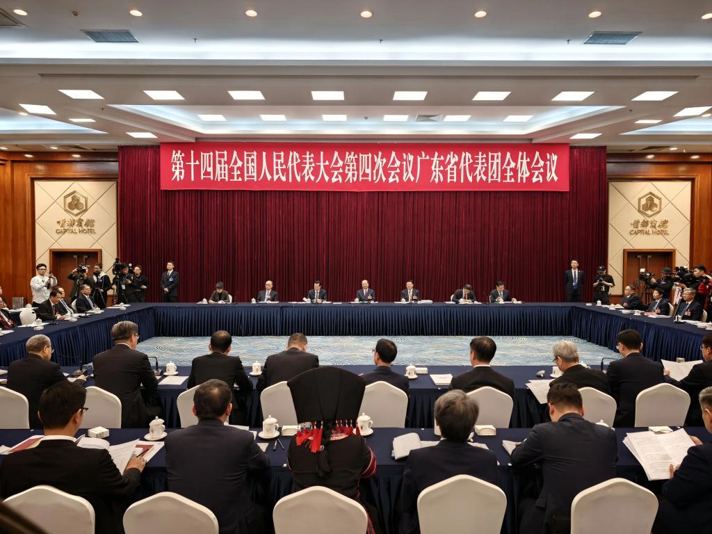 3月6日,十四屆全國人大四次會議廣東代表團(tuán)舉行開放團(tuán)組會議。