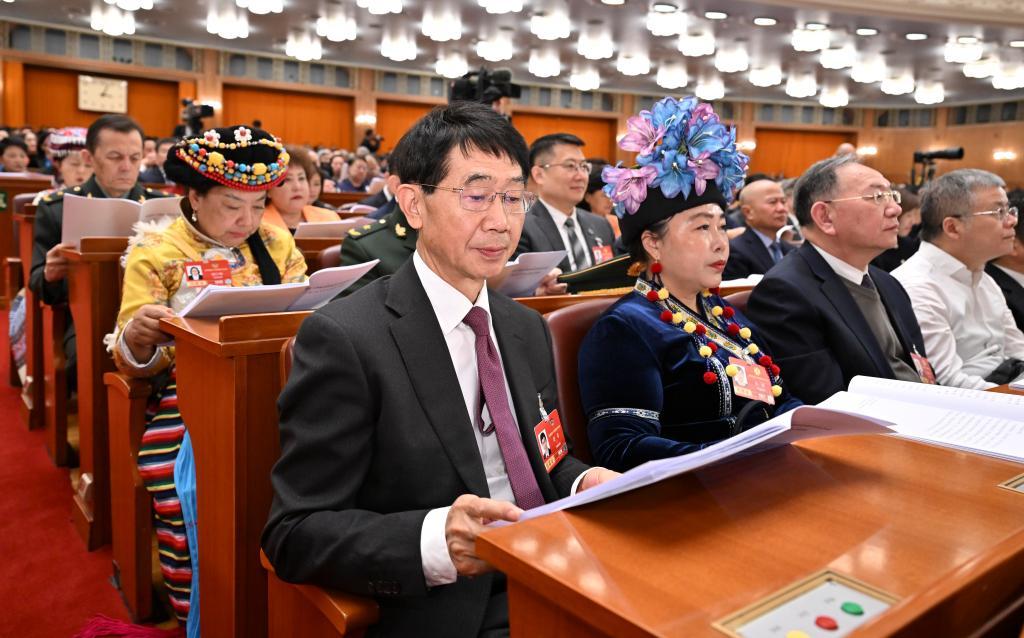 3月7日,全國政協(xié)十四屆四次會議在北京人民大會堂舉行第二次全體會議。周強主持會議。