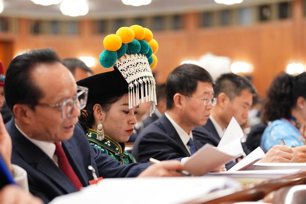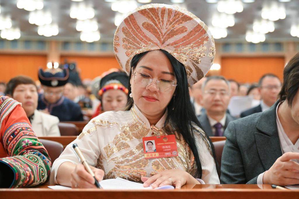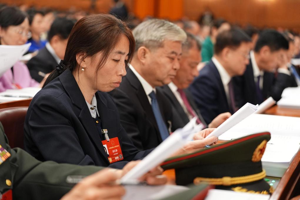 3月5日,張瓊麗代表在十四屆全國(guó)人大四次會(huì)議開幕會(huì)上聽會(huì)。