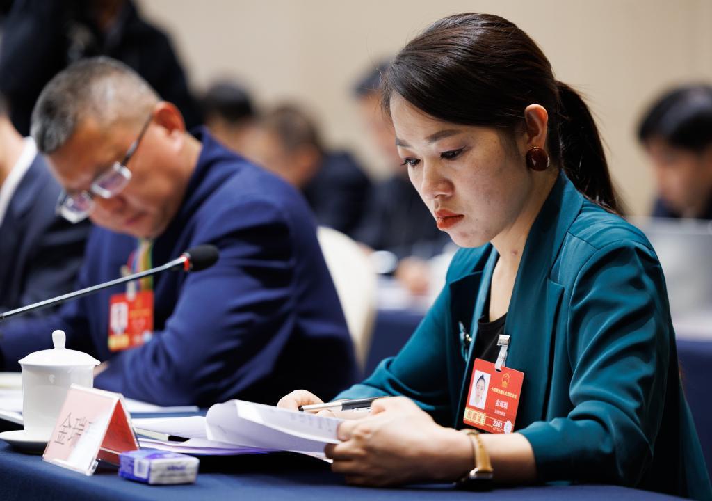 3月6日,金瑞瑞代表在駐地參加分組審議。